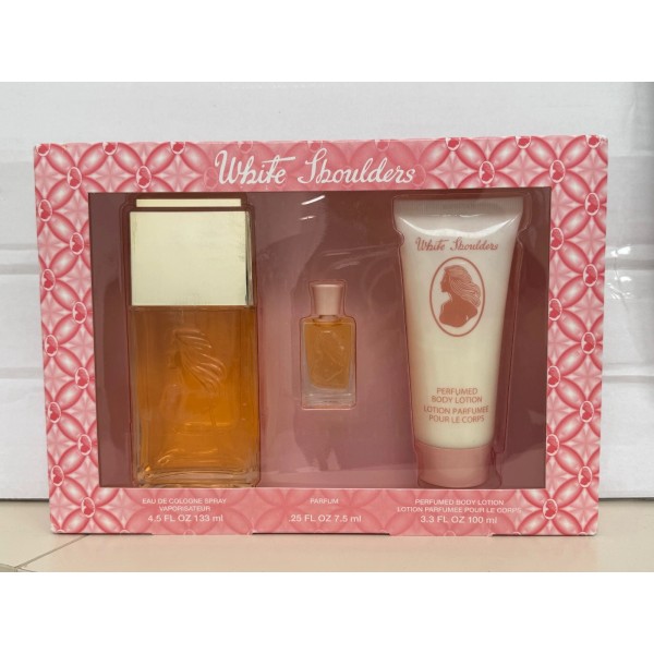 Evyan White Shoulders Gift Set 4.5 OZ Spray, .25 OZ Parfum, 3.3 OZ Perfumed Lotion