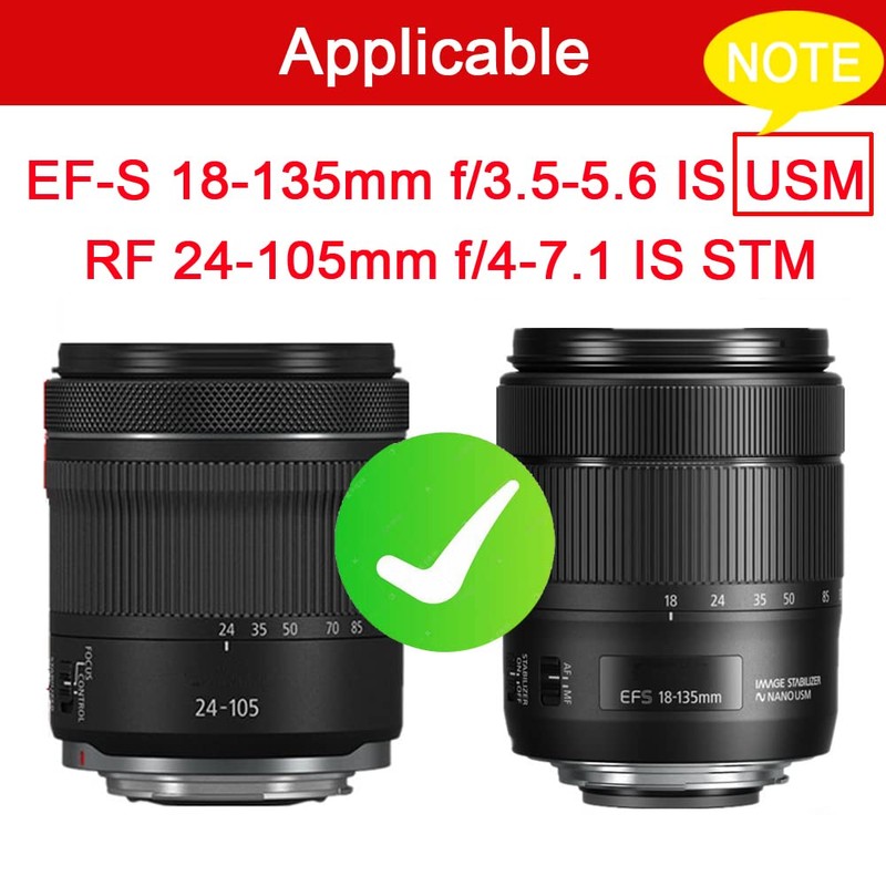 - Compatible with Canon EF-S 18-135mm f/3.5-5.6 IS USM Lens, RF 24-105mm f/4-7.1 IS STM Lens.