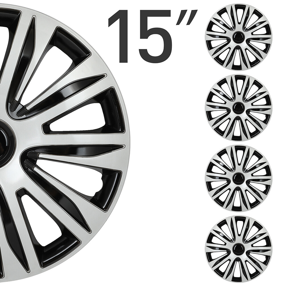 4X Hub Caps 15" Wheel Cover Black & Silver Cover Kit Fits All Makes Models
