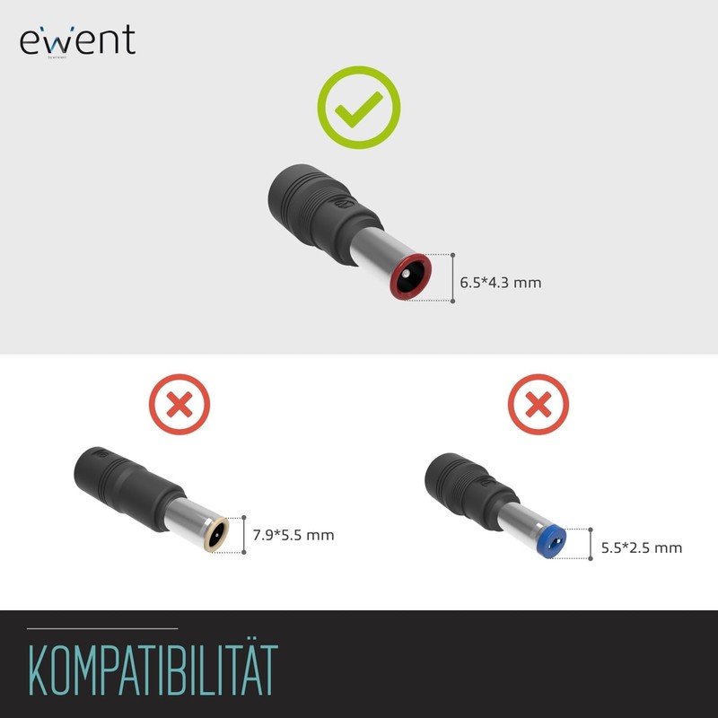 Ewent EW3891 | 65 W 19.5 V 3.3 A / 19 V 3.42 A | Charger Power Supply for Notebooks: Sony, Fujitsu | Connection: 6.0 x 4.3 mm