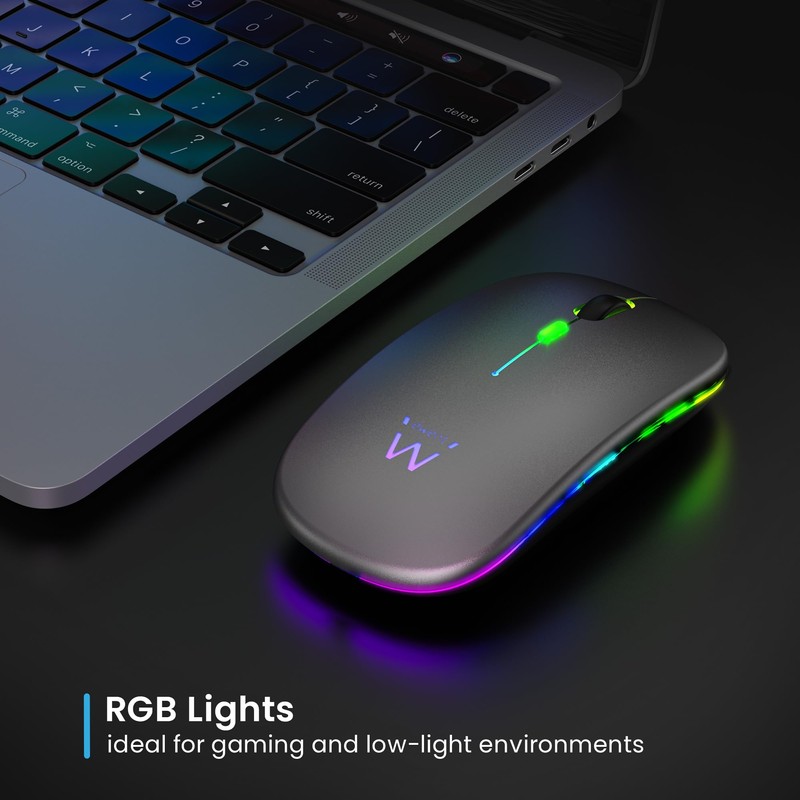 Ewent Rechargeable Wireless Mouse with RGB Lights | Bluetooth 5.2 & 2.4GHz | Adjustable DPI (800/1200/1600) | Quiet Buttons | Compatible with Windows, Mac, iOS, Android