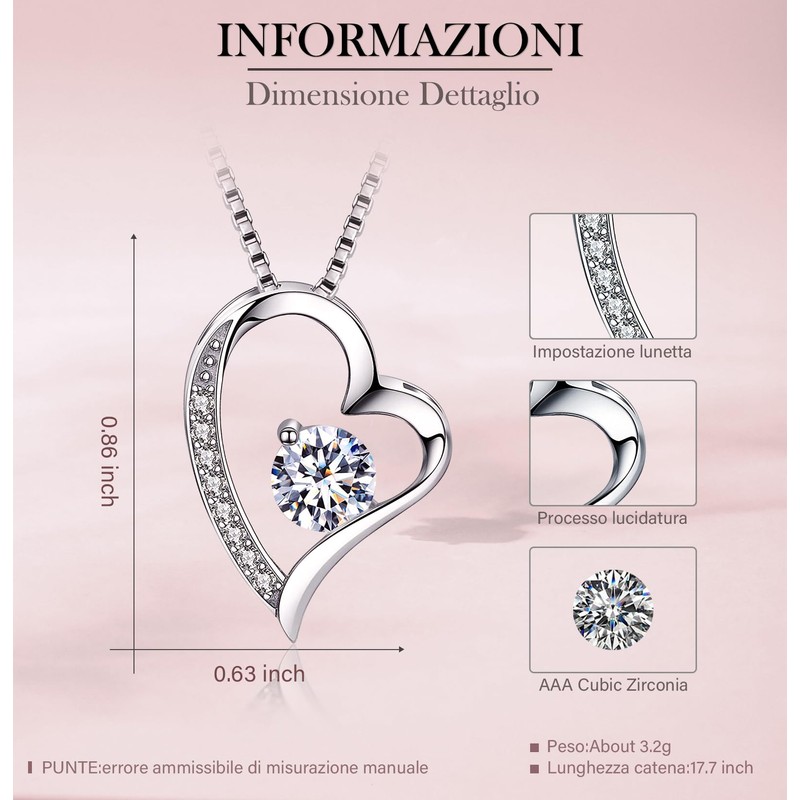 - 【Sterling Silber Herz Halskette】 Die rosévergoldete Kette im Inneren der Schmuckschatulle besteht aus 925er Sterlingsilber und der Herzanhänger besteht aus 925er versilbertem Kupfer, in der Mitte des Anhängers ist mit einem 5A kubischen Zirkonia in Edelsteinqualität eingelegt. Diese sicheren Materialien haben eine geringe Empfindlichkeit und Oxidationsbeständigkeit. Der Anhänger verfügt über eine einzigartige herzförmige Struktur, die Liebe für immer symbolisiert.