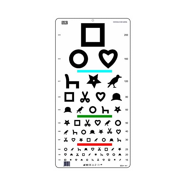 Ewing Illiterate OPTOMETRIC Visual Acuity Eye Chart - 6 m - 28 x 56 cm