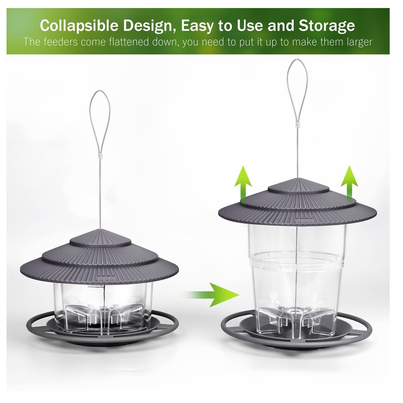 - Keep the Food Safe: The metal steel wire has a strong load-bearing capacity. Locks on top of feeder keep lid tightly closed, protecting bird feed from squirrels