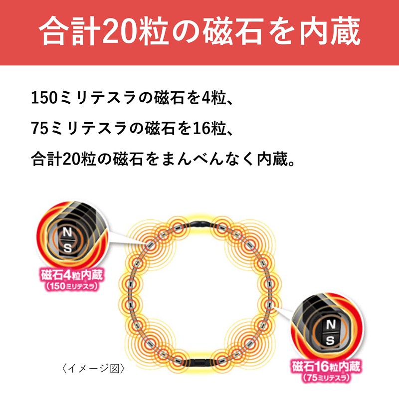 - 【血行改善】磁気ネックレス「ピップマグネループEX」は、4つの磁石が150ミリテスラの強い磁力を放射。磁気が血行促進し、首コリ、肩こりをほぐします。
