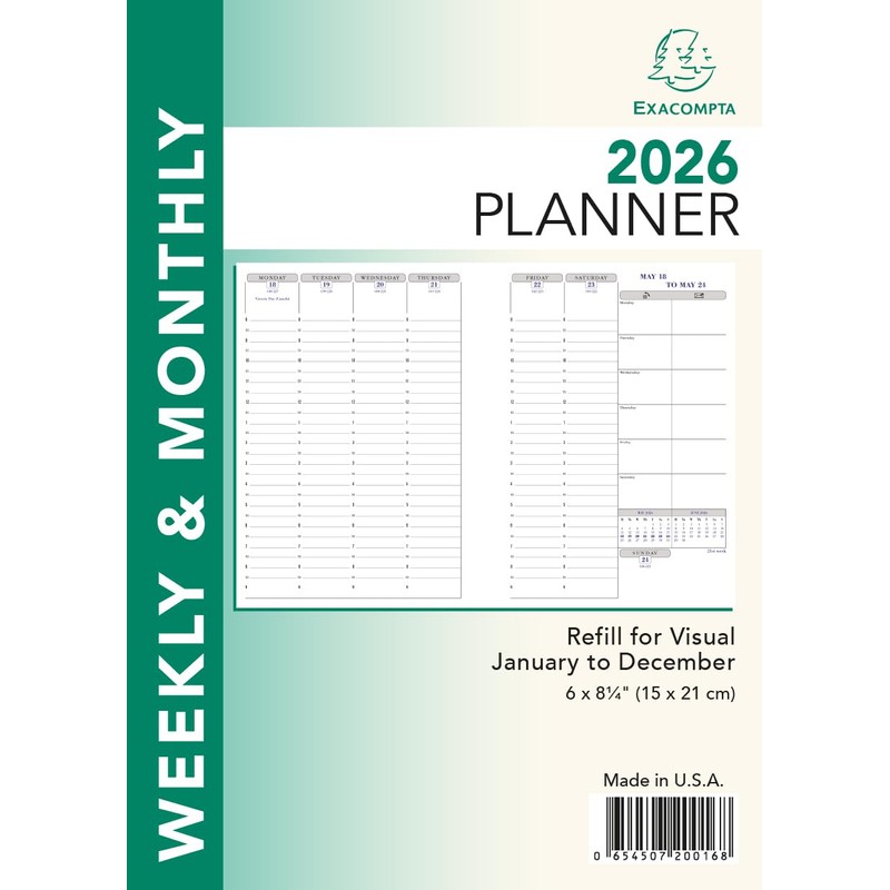 Exacompta 2026 Refill For Visual Planner - Time Management Appointment Organizer