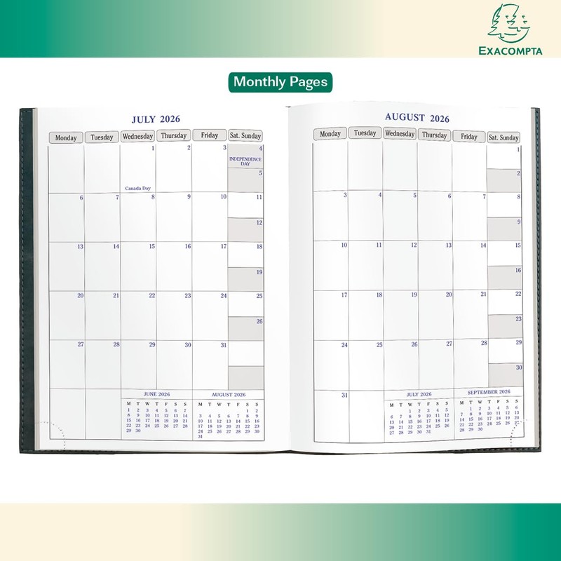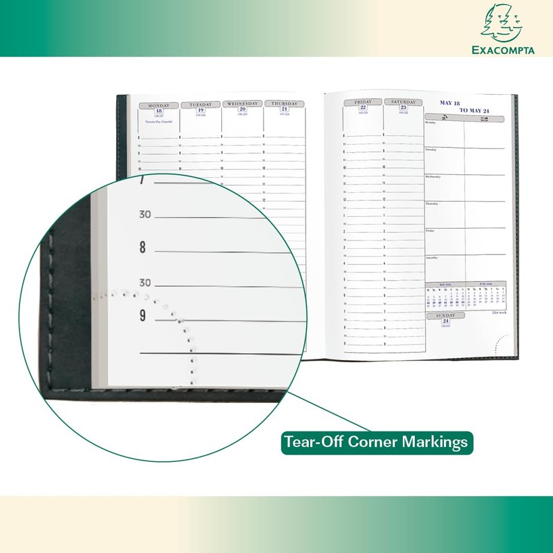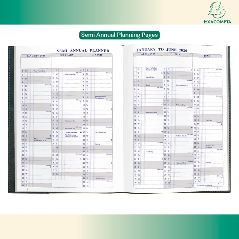 - TIME ORGANIZING EXPERTISE SINCE 1941 - Eight decades of organizing experience are in each Exacompta planner. With French-made Clairefontaine paper printed and bound in the US, each planning journal includes tear-off corners, planning spreads, maps, and engineered layouts to structure your goals and record your accomplishments.