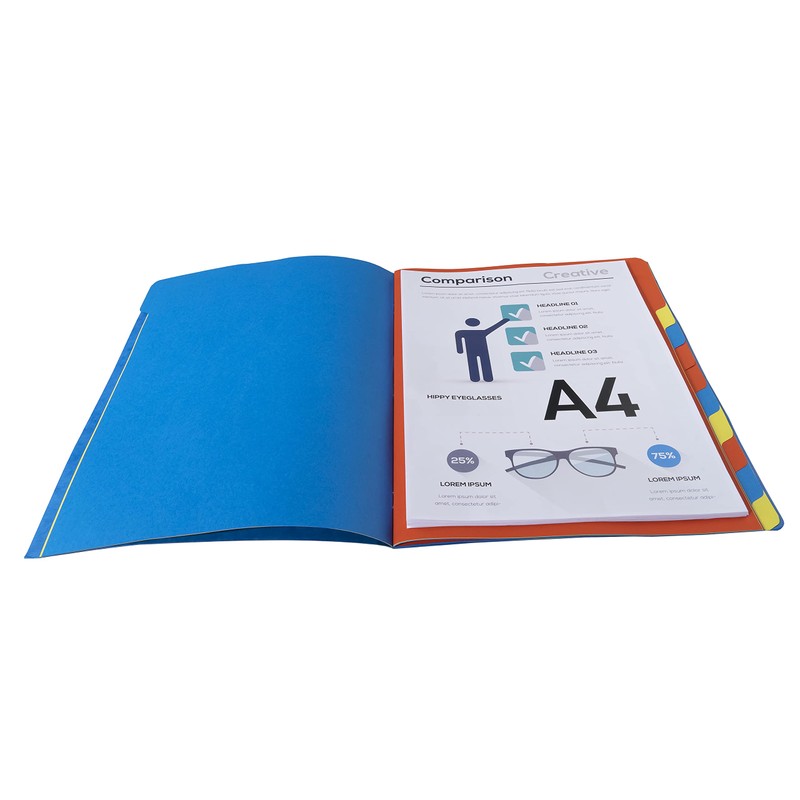 • Made from a premium pressboard cover with bright coloured tabs.