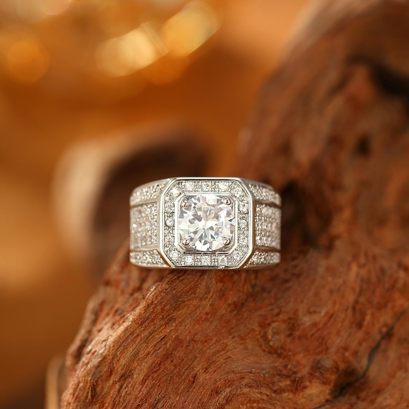 - Iced Out Ring for Men: Full diamond Zircon Paved men's iced out rings, hip hop big CZ diamond ring iced out. These sparkling rings look better on the hand than seen in the pictures, showing character and luxury