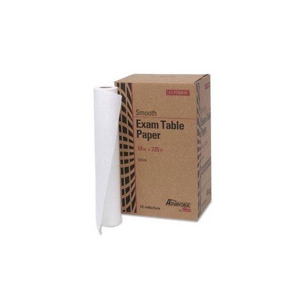 Exam Table Paper, 18" x 225 ft, White, Smooth, 12/cs