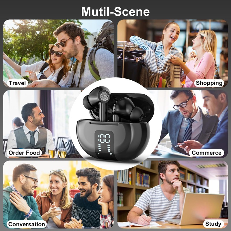 • Instant Translation for Every Scenario: earbud translator in real time, enabling effortless global communication, used in conferences, presentations, classes, travel, business, daily chat, education
