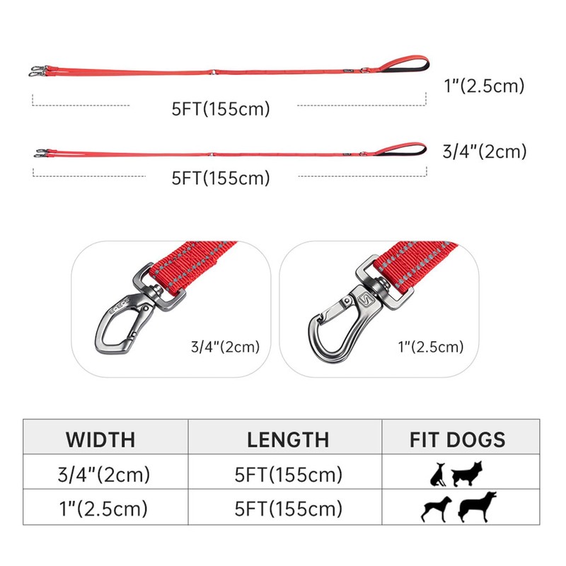 - ❤Reflective Strips:This double dog leash has a highly reflective design, which ensures excellent visibility on the road and provides extra protection during night walks. Whether cars, bicycles or other pedestrians, no one will be able to see you!