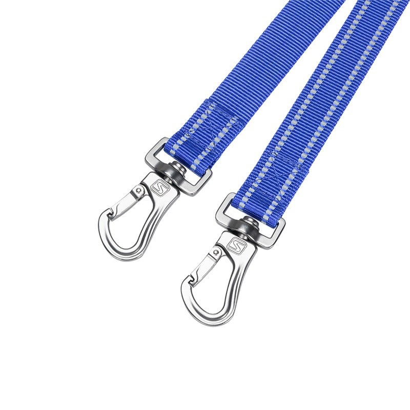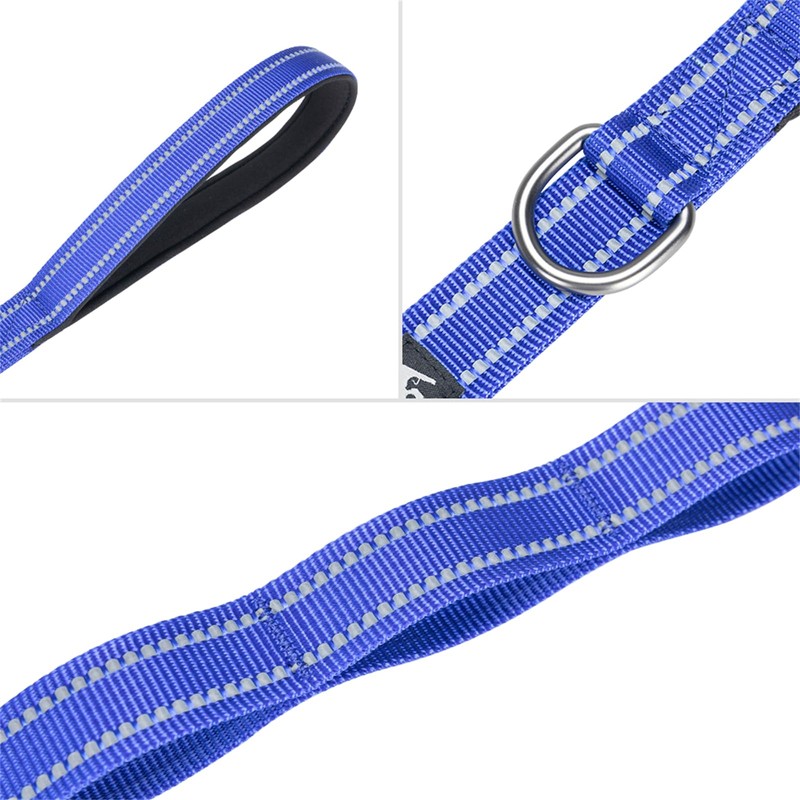 EXCELLENT ELITE SPANKER 5ft Double Lead Reflective Nylon Dog Lead Multiple Dog Lead with Padded Handle for Two Dogs Training Running (Blue)