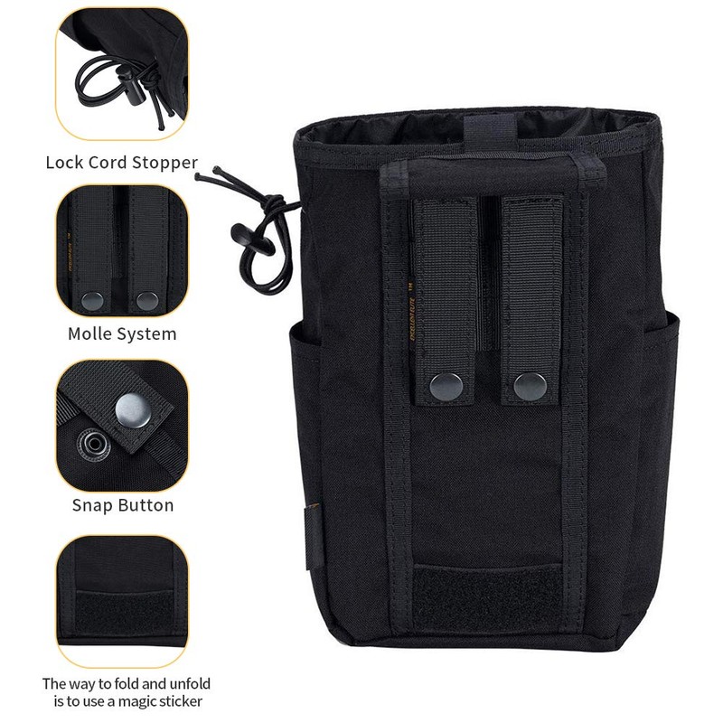 EXCELLENT ELITE SPANKER Molle Dump Pouch Drawstring Magazine Utility Pouch Folding Dump Pouch Waist Bag(Black)
