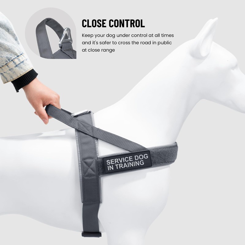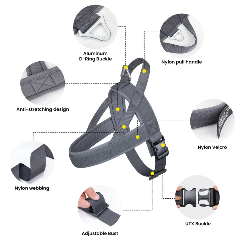 - Easy contorl for best dog harness. You can control your dog with the nylon handle, or hook the V-shaped aluminum alloy buckle on the top of this pet dog harness chest with dog leash firmly to provide you the best control on your dog.