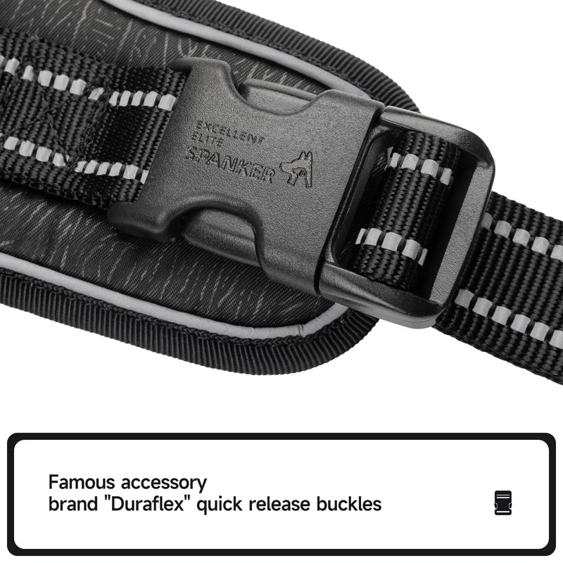 EXCELLENT ELITE SPANKER Nylon Reflective Dog Harness Adjustable No Pull Lightweight EVA Padded Vest Nameplate-Front Clip Service Dog Harness with Buckle for Medium Large Dogs (Black, L)