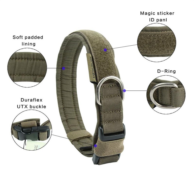 - Duraflex UTX buckle, This adjustable dog collar / small medium large dog collar is lightweight and hard, puppy reduces the burden on the neck. The military collars for dogs has a D-Ring can be attached a dog leash to keep your dog next to you easier by your control.