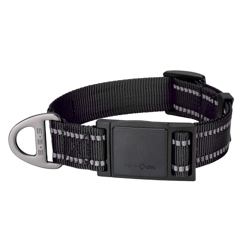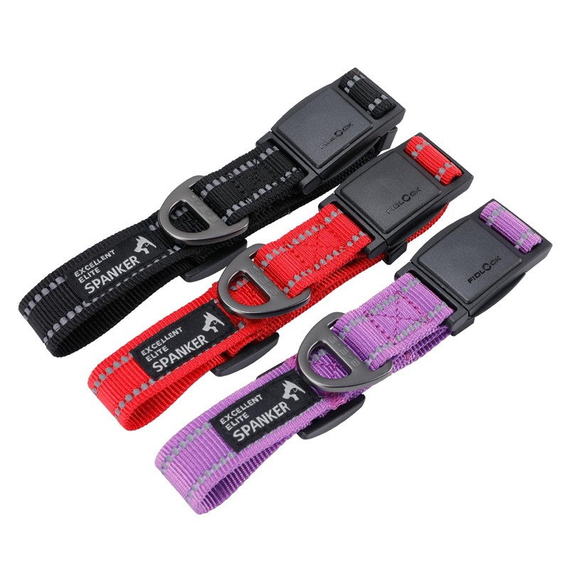 EXCELLENT ELITE SPANKER Reflective Nylon Dog Collar Premium Soft Adjustable Dog Collar with Magnetic Closure Switch for Small Medium Dogs (BLK)