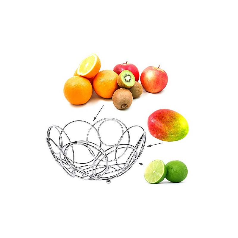 Excellent Houseware Fruit Basket, Decorative Fruit Bowl, Chrome, Diameter 26 cm Bowl