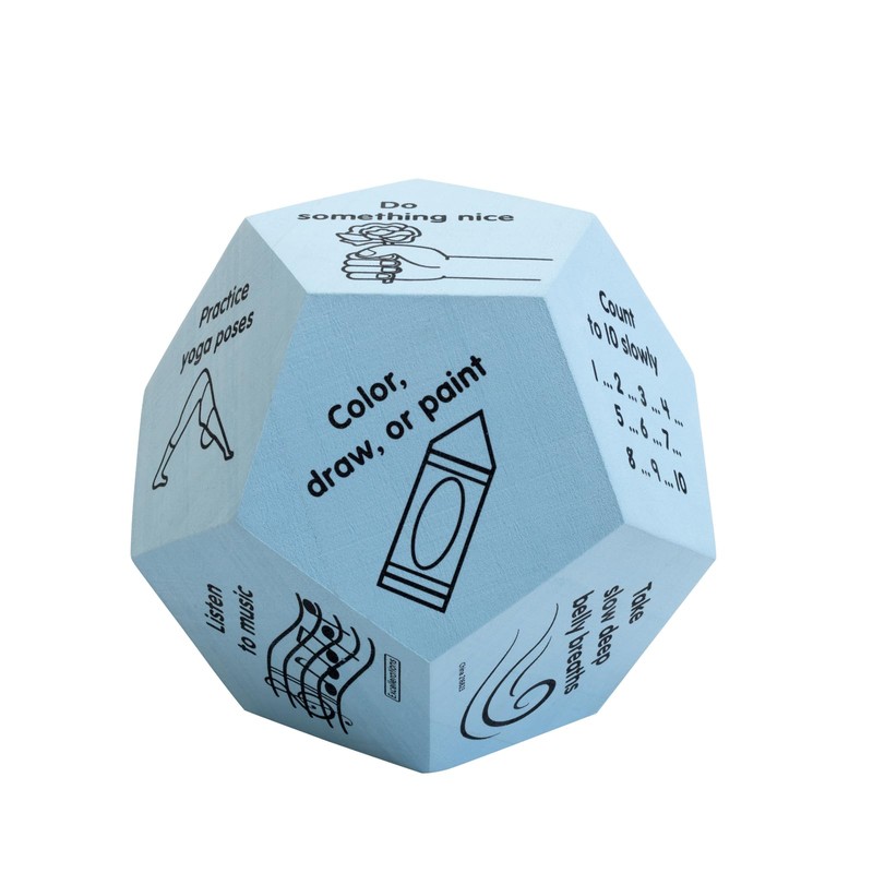• Sometimes, the classroom can be a difficult place for kids. When tensions are running high and children are in need of a way to help them calm down and focus, you can use this 12-sided die to come up with unique strategies that will get them back on track.