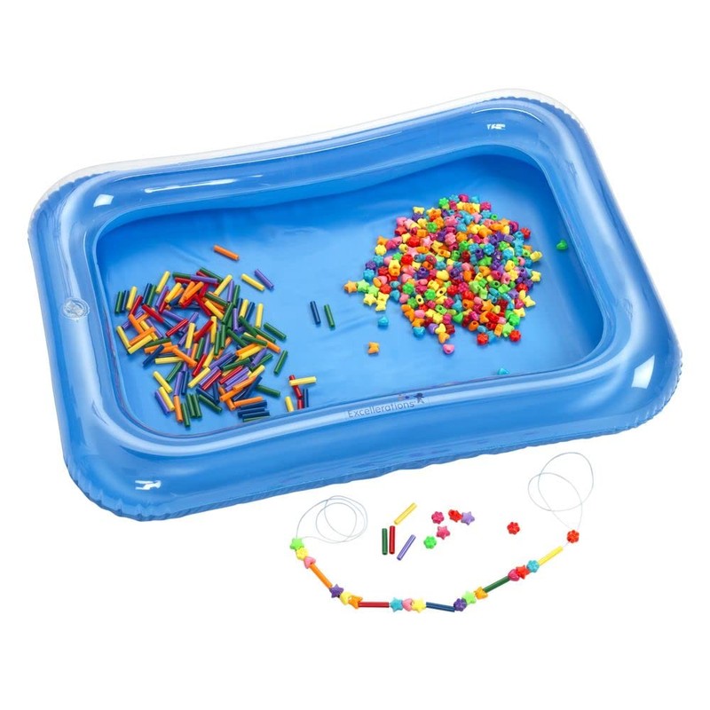 • WHAT YOU GET: You get 1 inflatable sensory tray with blue base and clear inflatable sides made of PVC material. Each tray measures 23.5" x 17.7".