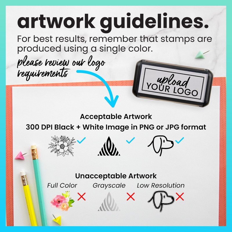 - CUSTOMIZED LOGO STAMP: This personalized stamp allows you to upload your own logo for a custom stamp with your unique business logo.