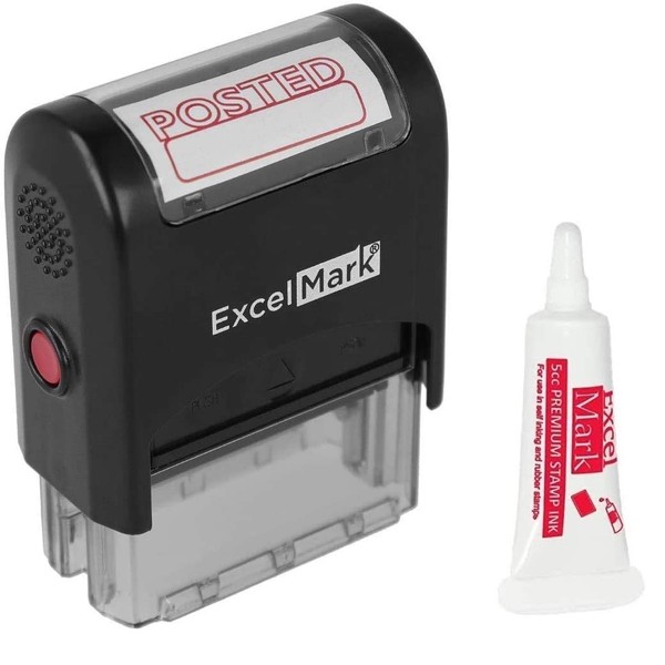 ExcelMark Posted Self Inking Rubber Stamp - Red Ink with 5cc Refill Ink