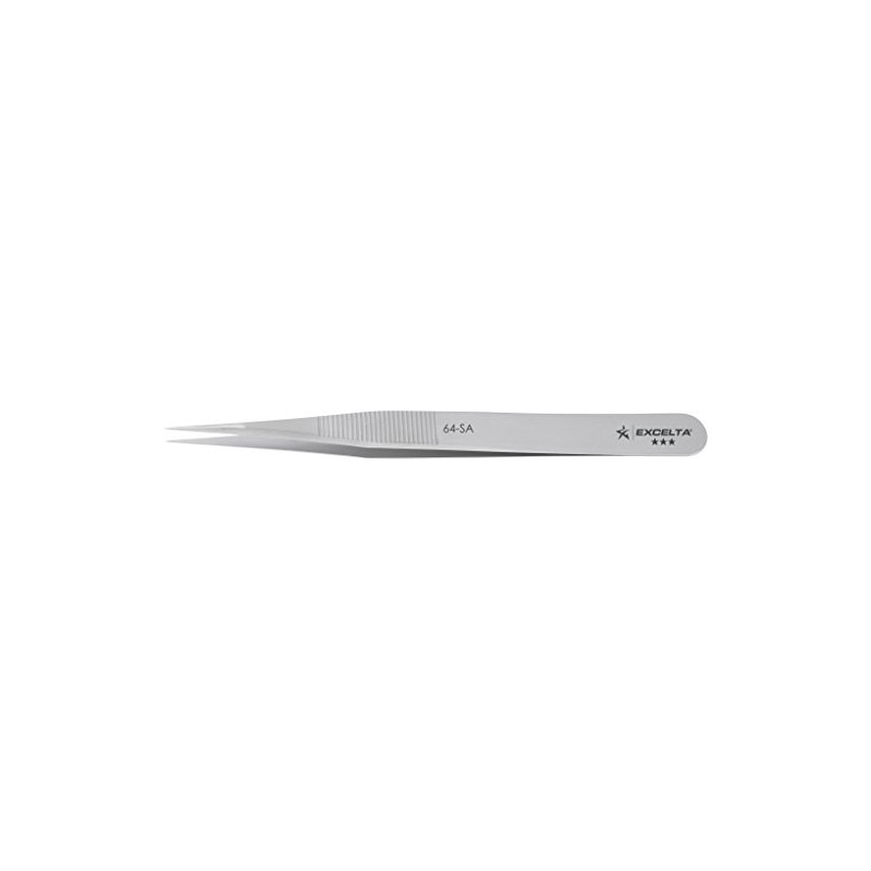 Excelta - 64-SA - Tweezers - Fine Point - Straight -Three Star - Anti-Mag. SS - Serrated Handle, 0.06" Height, 0.32" Wide, 4.75" Length