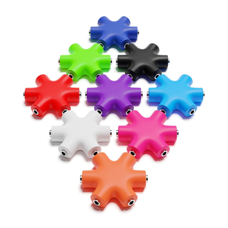 Mono Audio Multi Splitter Adapter A passive 1 into 5 multiplier in a star shape.
