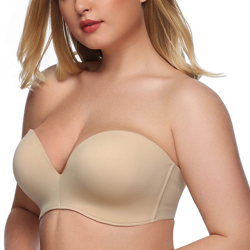 Exclare Women's Plus Size Invisible Seamless Anti-Slip Lift Push up Wirefree Strapless Bra(32DD,Beige)