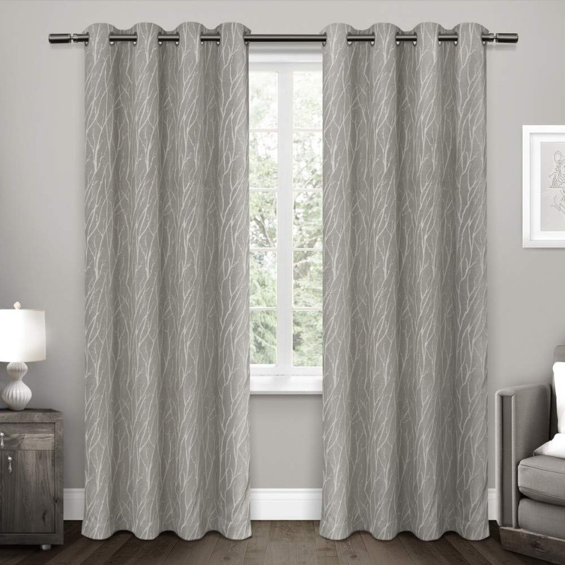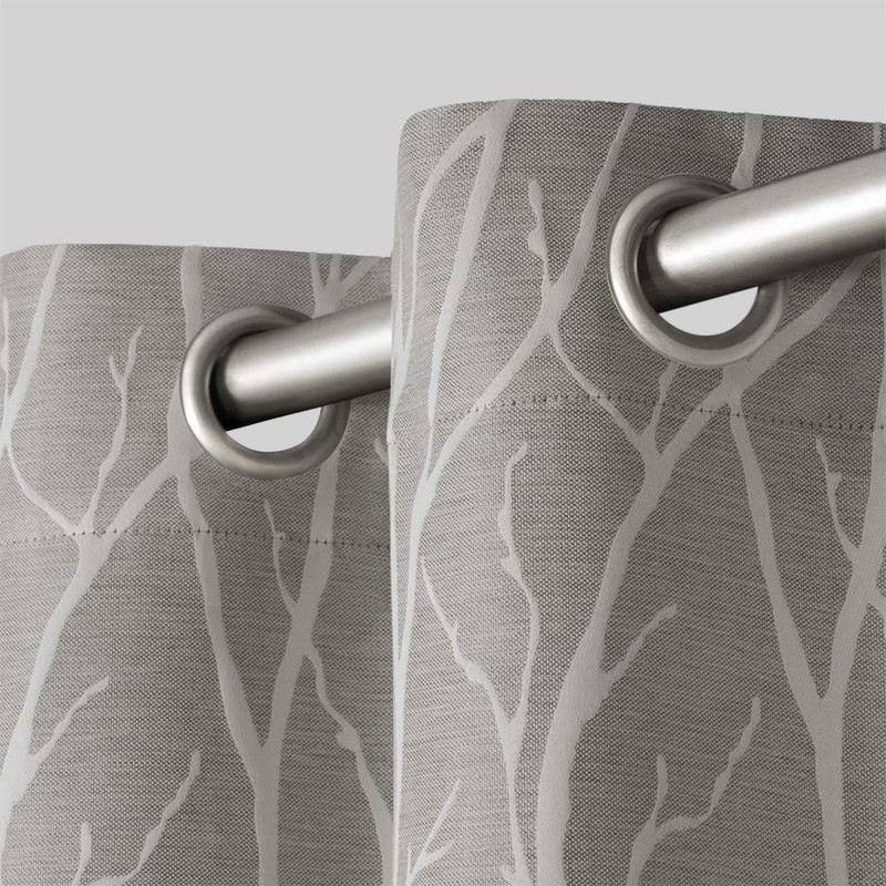 The Forest Hill grommet top window curtain panels provide a contemporary, yet natural look to any room in your home. This design with its linen look and natural branch motif style adds a natural look and is printed on a lush polyester fabric that feels rich as well. These woven panels drape beautifully and are interwoven with blackout insulation provided by LightBlock and Thermax technology. These panels will block light, prevent harmful UV rays from reaching your floors and furniture, efficiently prevents cold or heat transfer from outside, will increase energy efficiency of your home, provide unparalleled privacy, and allow you to create darkness at any time of day. Perfect drapery option for anyone seeking to block daylight, take a nap, or keep sun glare off your TV. The Forest Hill drapery is constructed with gorgeous, matte silver grommets and can be hung on your favorite curtain rod up to 1 5/8" diameter, adding yet another touch to the richness and luxury of your decor. These window curtain panels will drape beautifully from any window that could use that perfect, finishing touch. Our curtain panels are perfect for any living room, bedroom, family room, dining room, bathroom and office. Our stylish designs will suit any window space.