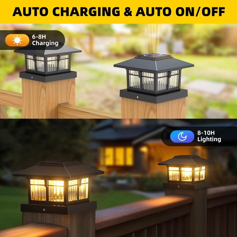 - QUICK & EASY INSTALLATION - No wiring required! Simply mount onto the post, flip the switch, and enjoy beautiful illumination with zero maintenance.