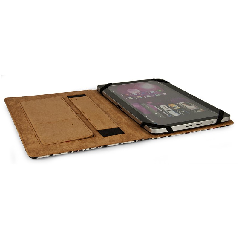Keep your Tablet safe and secure while optimizing everyday productivity, whether your are on the couch, at your desk, in bed or on a plan, no matter where you are. It's got a built-in stand for operating in landscape mode or even in typing mode, this lets you use your tablet comfortably to type documents such as emails, homework or even class notes. The open-frame design allows easy access to the controls and built-in ports on the tablet - On/Off switch, volume control, DC-IN, Audio, HDMI, USB, mini-USB and SD card ports. Protects from Bumps Dents and Scratches (Soft interior to prevent scratches). Hard Cover Design Feels like a real book. Access to all ports and buttons. Build in stands allows you to easily type, watch movies and navigate your device at your best comfort. EZ Strap Feature, allows you to hold your device securely while in use preventing the device from slipping off your hands. Overall this is an everyday use case that will keep your tablet safe whenever and wherever you go! (Exterior material: Faux Executive Leather, Interior material; soft suede. Case was stich with strong durable fine nylon material to prevent from the stitching falling off and provide longer durability of the case)