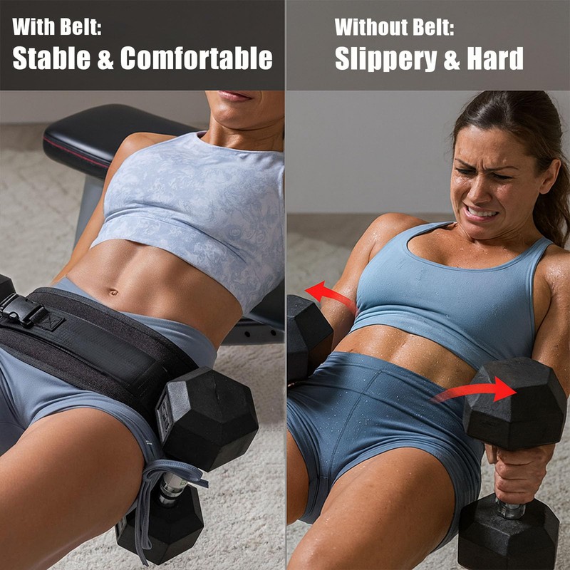 - Train Confidently Toward Your Ideal Shape:Build stronger glutes with fewer roadblocks—no barbell discomfort, no bulky machines. Clip in a dumbbell or kettlebells, tighten, and focus on powerful hip drives. Consistent, comfortable reps help you stay motivated, train more often, and make steady progress toward the physique you want. Your hip thrust belt fits easily into any weight lifting belt routine so you can lift with confidence at home or in the gym