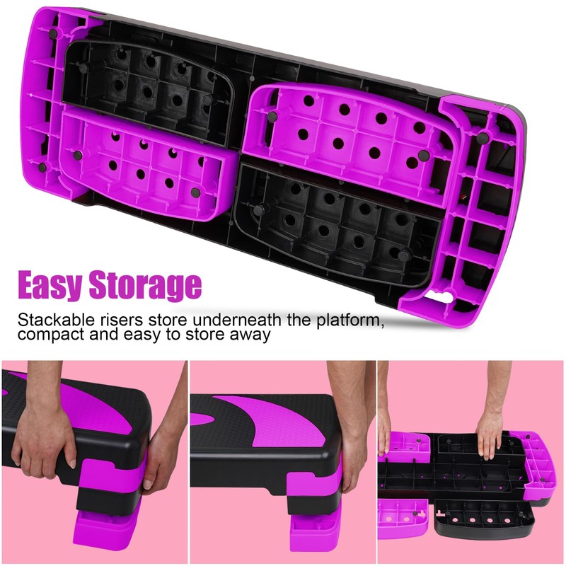 - 【Lightweight & Compact】Step platform is lightweight and you can carry it anywhere like gym, office or outdoors. The stackable risers can be easily stored underneath the platform that you can store it under your bed, sofa or corner. Just step to a healthy life from now!