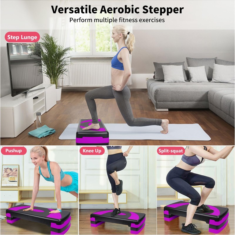 Exercise Workout Aerobic Step Platform Trainer, 31" Aerobic Stepper with 4"-6"-8" Adjustable Height Risers (Purple)