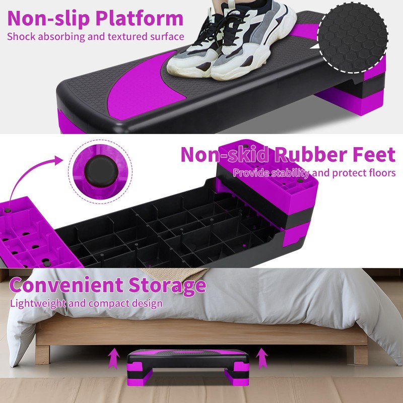 - 【Anti-slip & No Scratches】Textured surface is non-slip and shock absorbing, meaning you can have stability with every single set of steps. Workout stepper comes with nonskid rubber feet on each riser, prevent you from sliding/slipping, provide stable performance and leave no scratches.