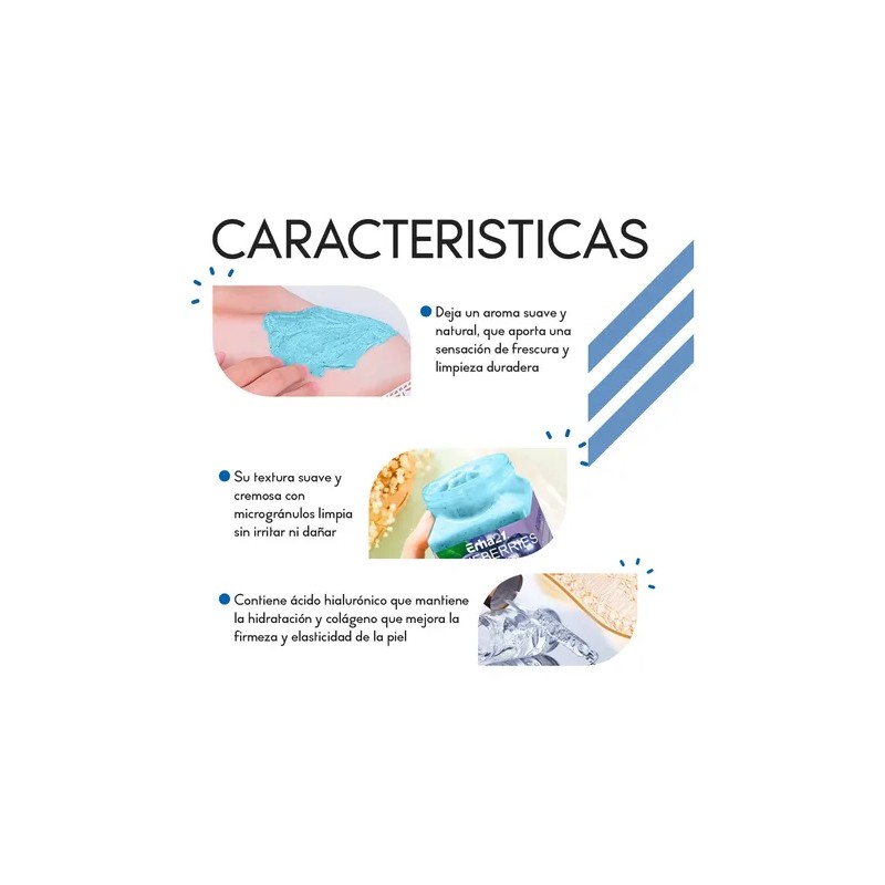 • EXFOLIACIÓN EFECTIVA CON AGUACATE NATURAL: El extracto de aguacate elimina impurezas y células muertas, dejando la piel suave, limpia y fresca al instante. Favorece la renovación celular y mejora el aspecto general de la piel.