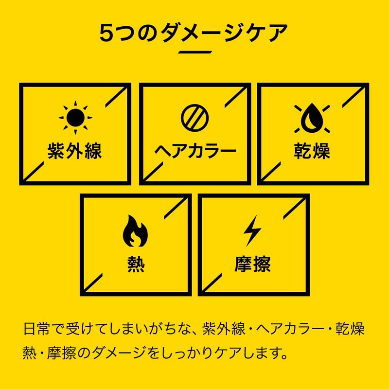 - [Product Features] A treatment that further moisturizes and protects damage care: Dye seed extract that cares for damage caused by 5 types of UV rays, hair color, dry, heat, and friction. *Contains 3 natural ingredients, including terrible banana trapezer seed oil**, celeptic leaf extract