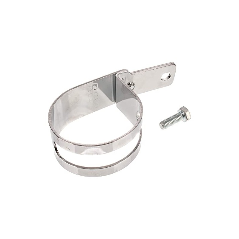 - Chrome exhaust clamp for attaching to the right footrest of the upper girth support strut