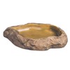 The Exo Terra Reptile Feeding Dishes are made from food-grade resin and have a very natural and realistic rock finish on the outside and a smooth non-pitted surface on the inside. Exo Terra's Reptile Feeding Dishes are coated to prevent the development of harmful bacteria and to make it easier to clean. The neutral color of Exo Terra accessories allows for easy integration in desert, tropical or rainforest terrarium environments. The Exo Terra Feeding Dish is sturdy, durable and not easily tipped over by larger reptiles.
