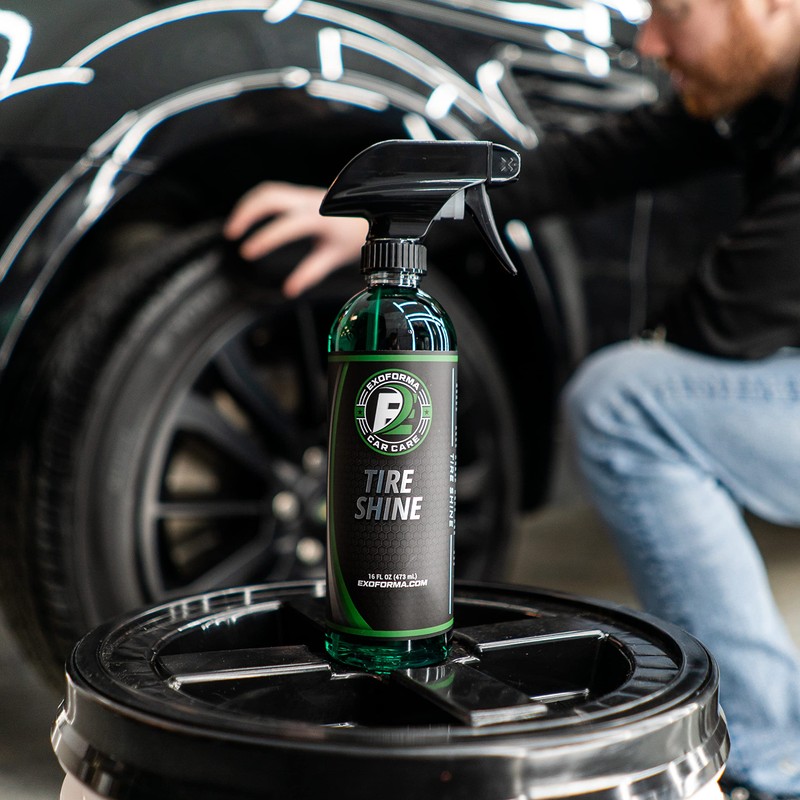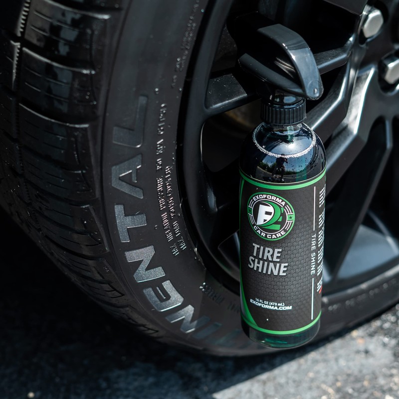 ExoForma Tire Shine - Solvent Based Durable Tire Dressing, Easy to Apply & Lasts Weeks On Tires, Leaves Behind a Matte & Satin Deep Black Look