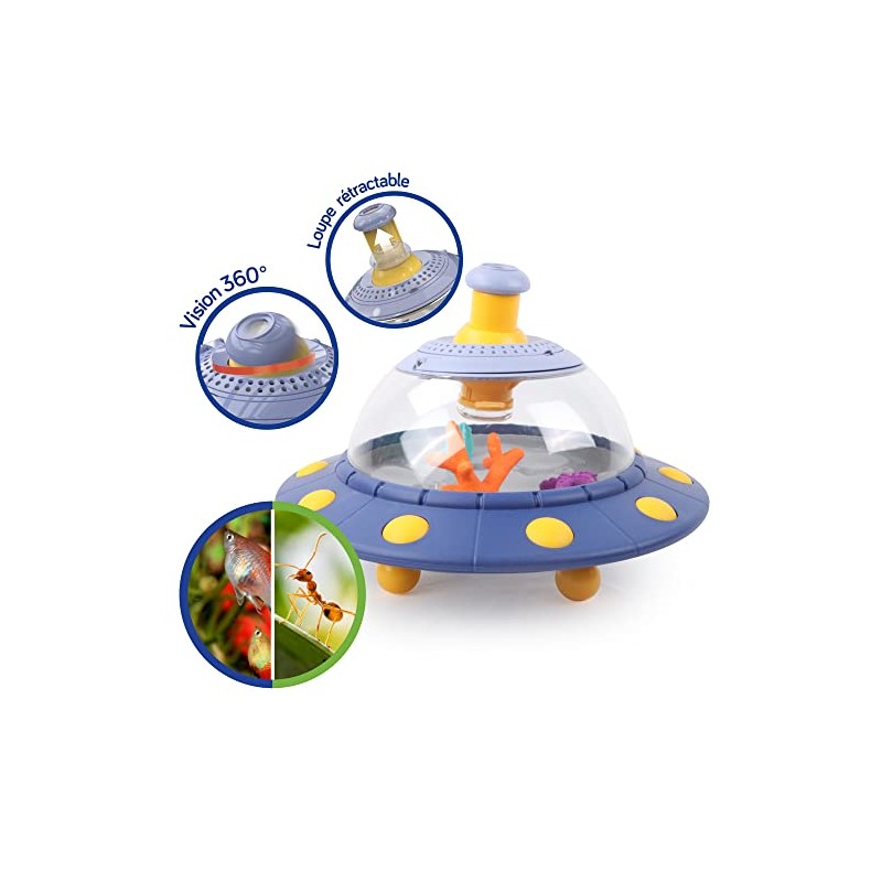 - DISCOVER THE MICROSCOPIC WORLD - This observation magnifying glass in the form of a flying saucer is designed to be invisible to a microscopic universe to the naked eye. This set is the perfect gift for young scientists.