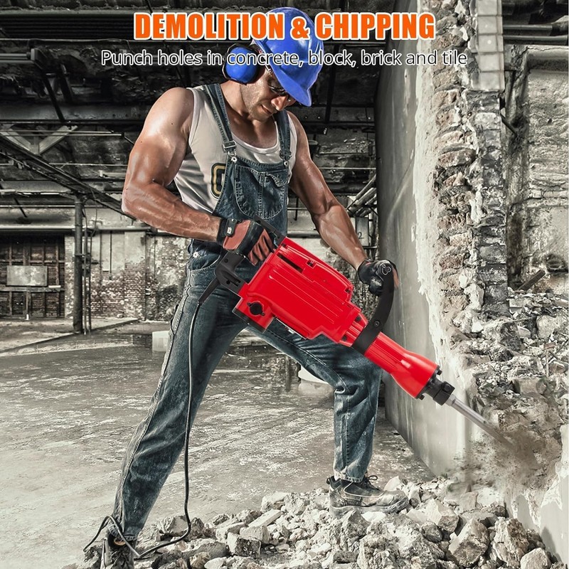 - 2200W High-Torque Motor: Powered by a 2200W motor, this jack hammer tackles tough jobs like demolishing walls, excavating foundations, or breaking through concrete and brick with ease. Suitable for both professionals and DIY enthusiasts, it performs reliably in indoor and outdoor environments, delivering durable, high-performance results for any demanding project.