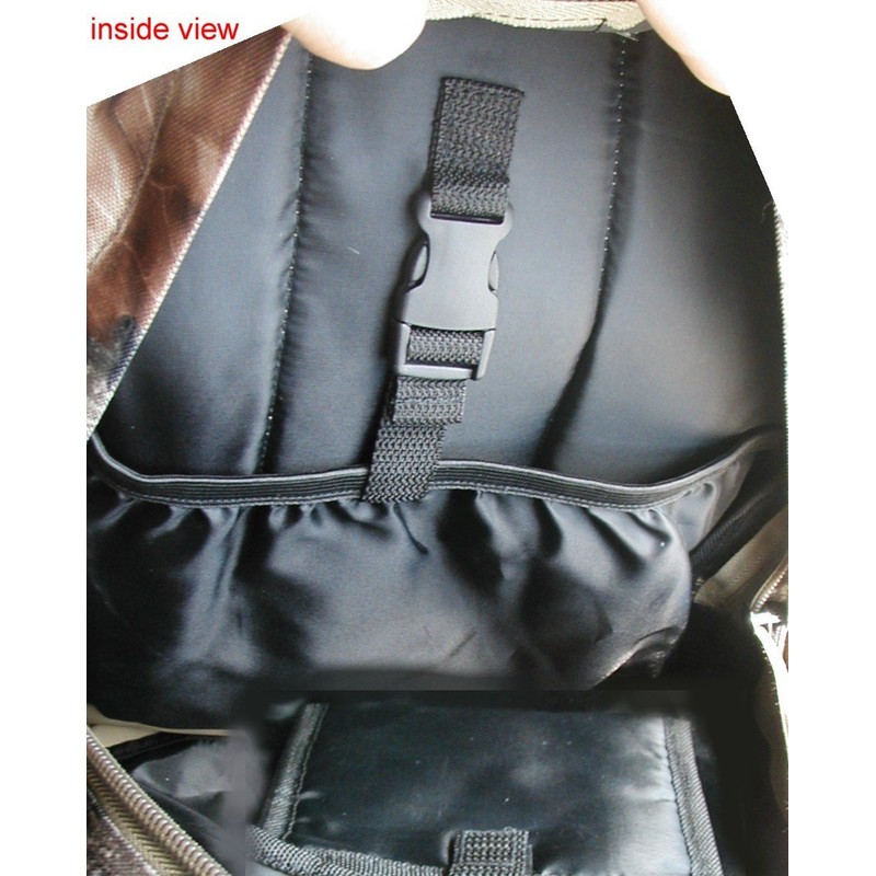 - Padded shoulder strap with a chest strap to fasten the shoulder strap in place.