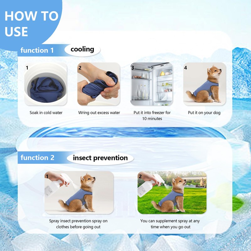 - SUPER COOLING--Lightweight and breathable vest designed to keep dogs cool and comfortable during hot weather. When using the vest, you can put it in the refrigerator after wetting it.