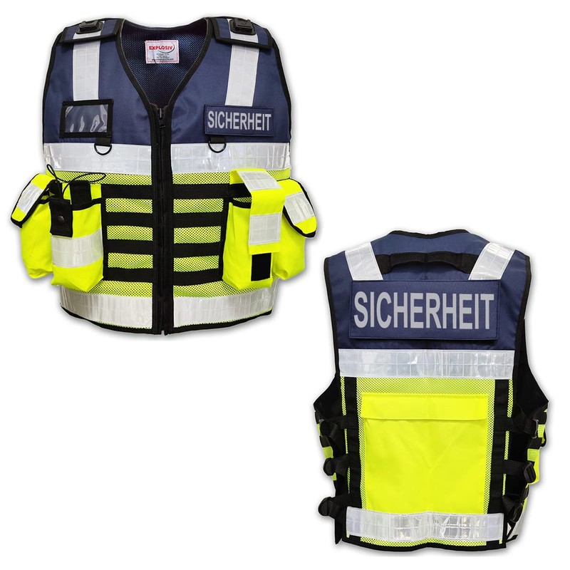 EXPLOSIV Reflective Multi-Pocket Security Vest, Size L-3XL (Adjustable), Navy-Yellow, Security