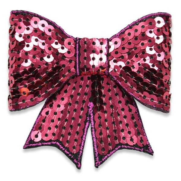 Expo International Bow Dimensional Iron-on Sequin Patches/Appliques, Fuchsia