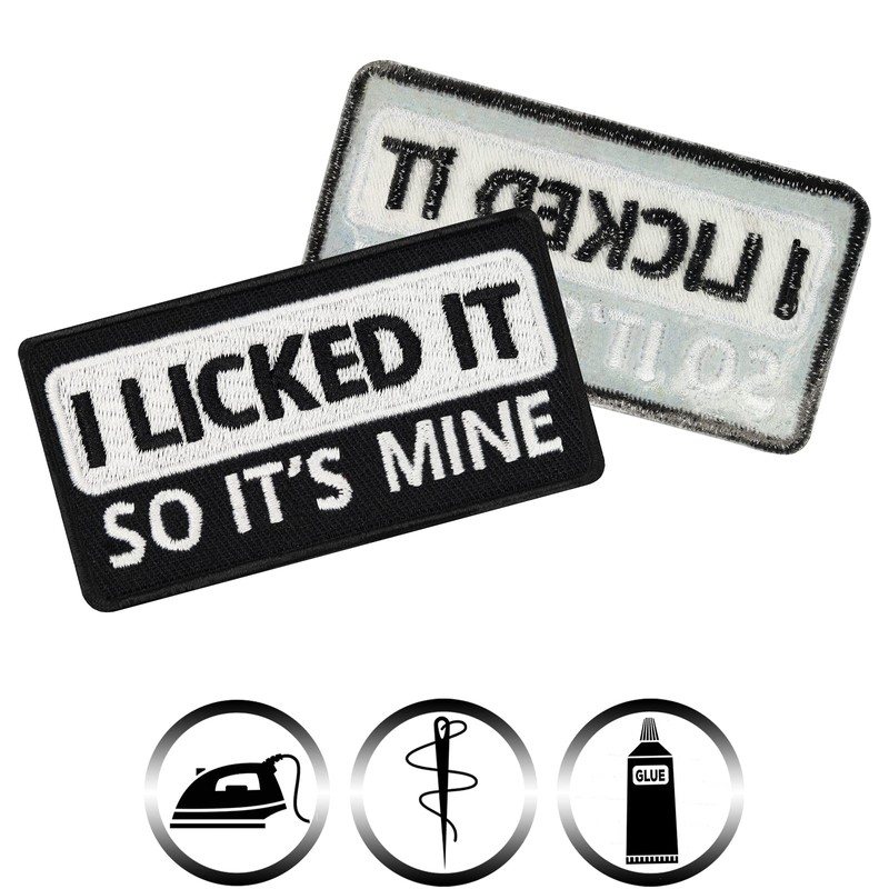 EXPRESS-STICKEREI Funny Patch I Licked It So It's Mine Sew-On Fun Sticker for Sewing/Ironing | Appliqué Jeans Patch Clothes Repair Iron-On Transfers for All Fabrics | 75 x 40 mm