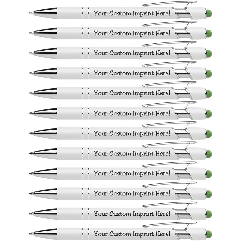 ExpressDesigns™ - Premium Custom Pens with Stylus | Beautiful White | Personalized Soft-Touch Metal Printed Name Pens w/Black Ink - 12 pack (Green)